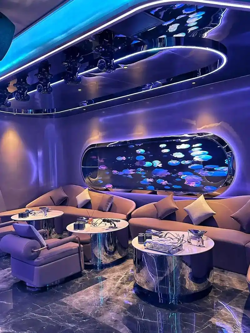 走进商务KTV,时尚奢华的装修风格瞬间映入眼帘。精致的灯光设计,舒适的沙发座椅,每一处细节都彰显着品质与格调。先进的音响设备,让你一展歌喉时仿佛置身于专业舞台,尽情享受歌唱的乐趣。
